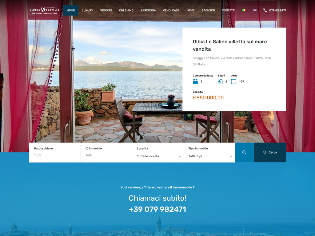 Global Services è un’agenzia immobiliare storica e leader in Sardegna, con una presenza consolidata ad Alghero e Olbia. Punto di riferimento nel mercato di prestigio, l’agenzia si distingue per una profonda conoscenza del territorio e una professionalità che le ha permesso di guidare il settore per decenni.